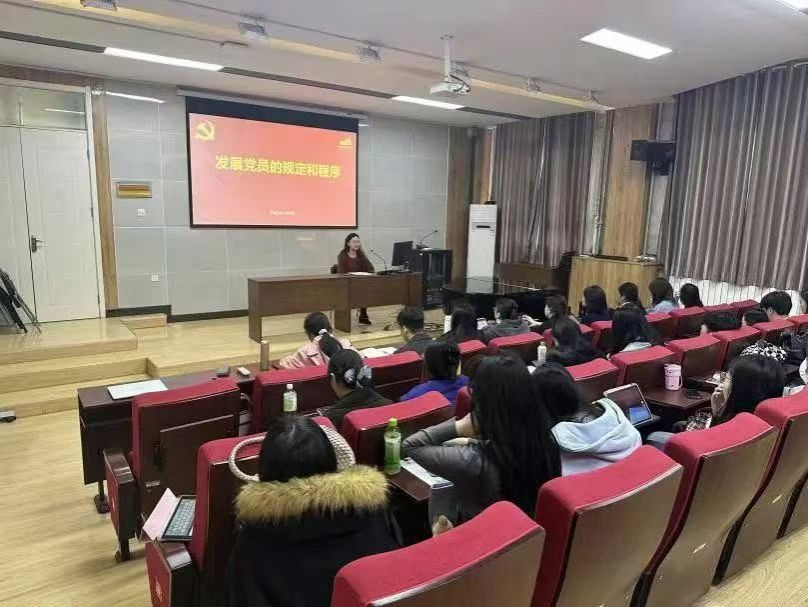 金慧以《发展党员的规定和程序》为题,为百余名入党积极分子系统解读了如何申请入党到成为正式党员的全过程,以“5+25”即五个阶段二十五步骤为主线,逐步解析思想汇报、政治审查、群众座谈等环节的意义,引导学员筑牢理想信念,明确奋斗目标。最后特别强调其不变的内核、初心与使命即为中国人民谋幸福,为中华民族谋复兴。