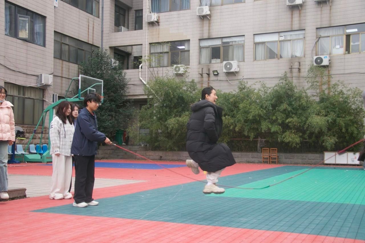 趣味运动会包含了投壶、跳绳、踢毽子赛等多个项目,每个项目都充满了挑战和激情。本次运动会七十余人参加,不仅是对学生身体素质的全面检验,更是对学生们精神面貌和团结合作精神的集中展示。投壶,这一古老的游戏在今日焕发出新的魅力,它不仅考验着大家的技巧,更增进了彼此之间的默契; 跳绳,速度与节奏的较量,选手们手中的跳绳飞快地舞动,脚下的步伐轻盈而有节奏,汗水在阳光下闪烁,笑容在脸上绽放; 踢毽子,彩色的毽子在空中上下翻飞,就像一个个快乐舞动的精灵,承载、传播着大家的欢声笑语。
