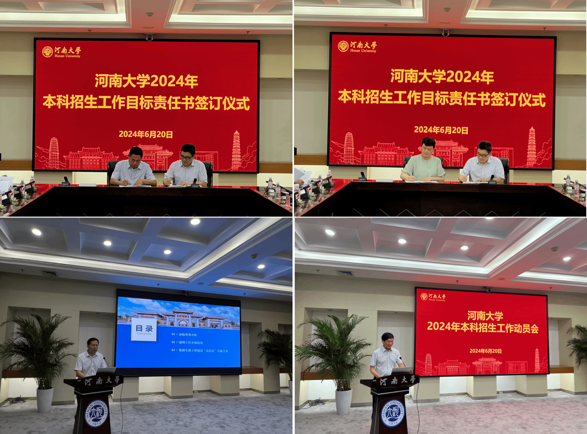 会议第二阶段,举行了河南大学2024年本科招生工作目标责任书签订仪式,历史文化学院和化学与分子科学学院作为代表与学校签订责任书。