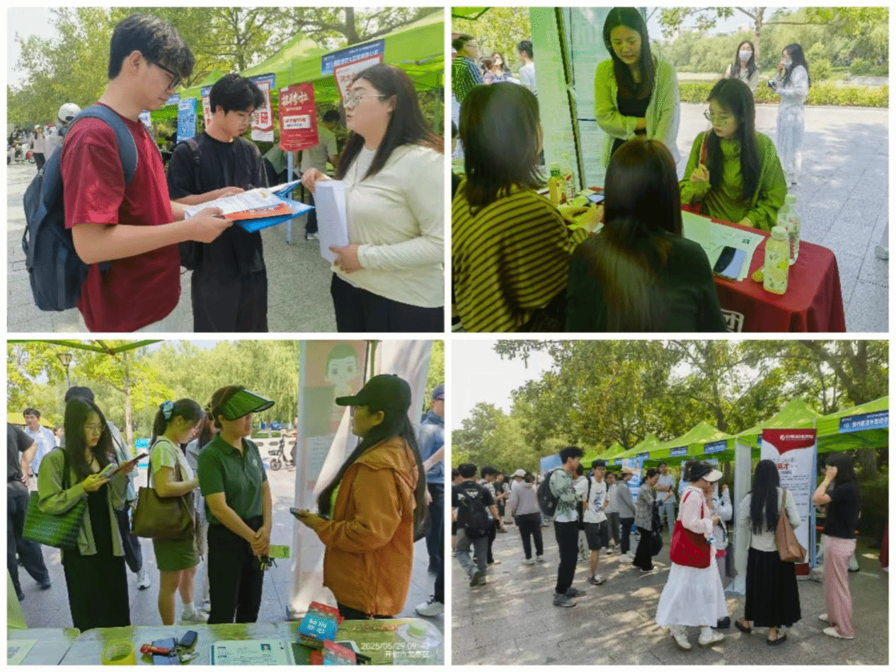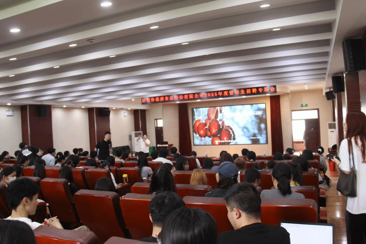 双选会在金明校区琴键路举办,活动吸引好想你健康食品股份有限公司、新疆伊宁县人民政府、中国大地保险河南分公司等企事业单位,以及郑州朗住住工科技有限公司、河南省四通锅炉有限公司等专精特新企业参会。45 家参会单位业务涵盖教育、金融、医疗、设计、咨询等多个领域,共提供超2000个岗位。活动次日,好想你食品股份有限公司在商学院二楼报告厅开展专场宣讲会。作为红枣行业龙头企业,公司详细介绍了产业布局及管培生培养体系,吸引200 余名毕业生参与。