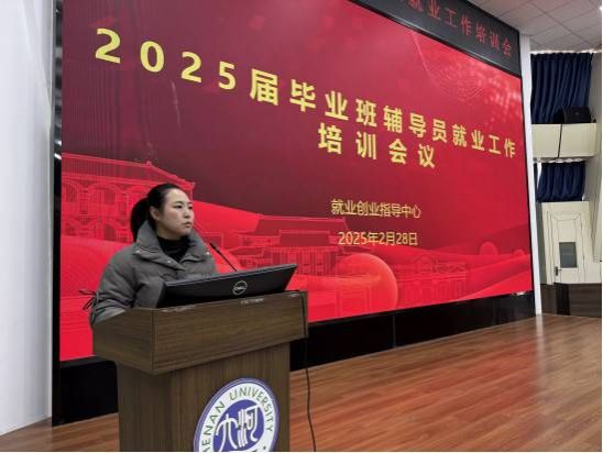 为深入贯彻落实党中央、国务院“稳就业”“保就业”决策部署,抢抓春季学期“金三银四”促就业关键期,扎实推进2025届毕业生就业工作,2月28日上午,河南大学就业创业指导中心在金明校区锥形报告厅举办2025届毕业班辅导员第二次就业工作培训会。就业创业指导中心主任李从国、学生处副处长李平、各学院及研究生培养单位毕业班辅导员、就业创业指导中心全体人员参加会议。会议由就业创业指导中心副主任栗晓文主持。