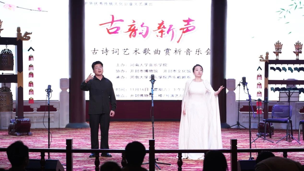 声乐歌剧系承办的“中华优秀传统文化公益文艺演出系列活动”之一,“古韵新声”古诗词艺术歌曲音乐会,在开封市博物馆二楼演艺厅精彩上演。开封市博物馆副馆长郑海涛、开封市文化馆副馆长彭舒、副馆长张华,K7娱乐