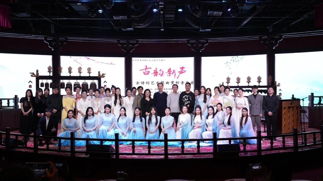 的学生们呈现了《如梦令·常记溪亭日暮》《定风波·莫听穿林打叶声》《一剪梅·红藕香残玉簟秋》等多首经典宋词歌曲。李清照、苏轼的名作,配以婉转灵动的旋律,凸显出宋词的婉约与富丽。通过同学们的表演,意境更加幽远,让人陶醉不已。