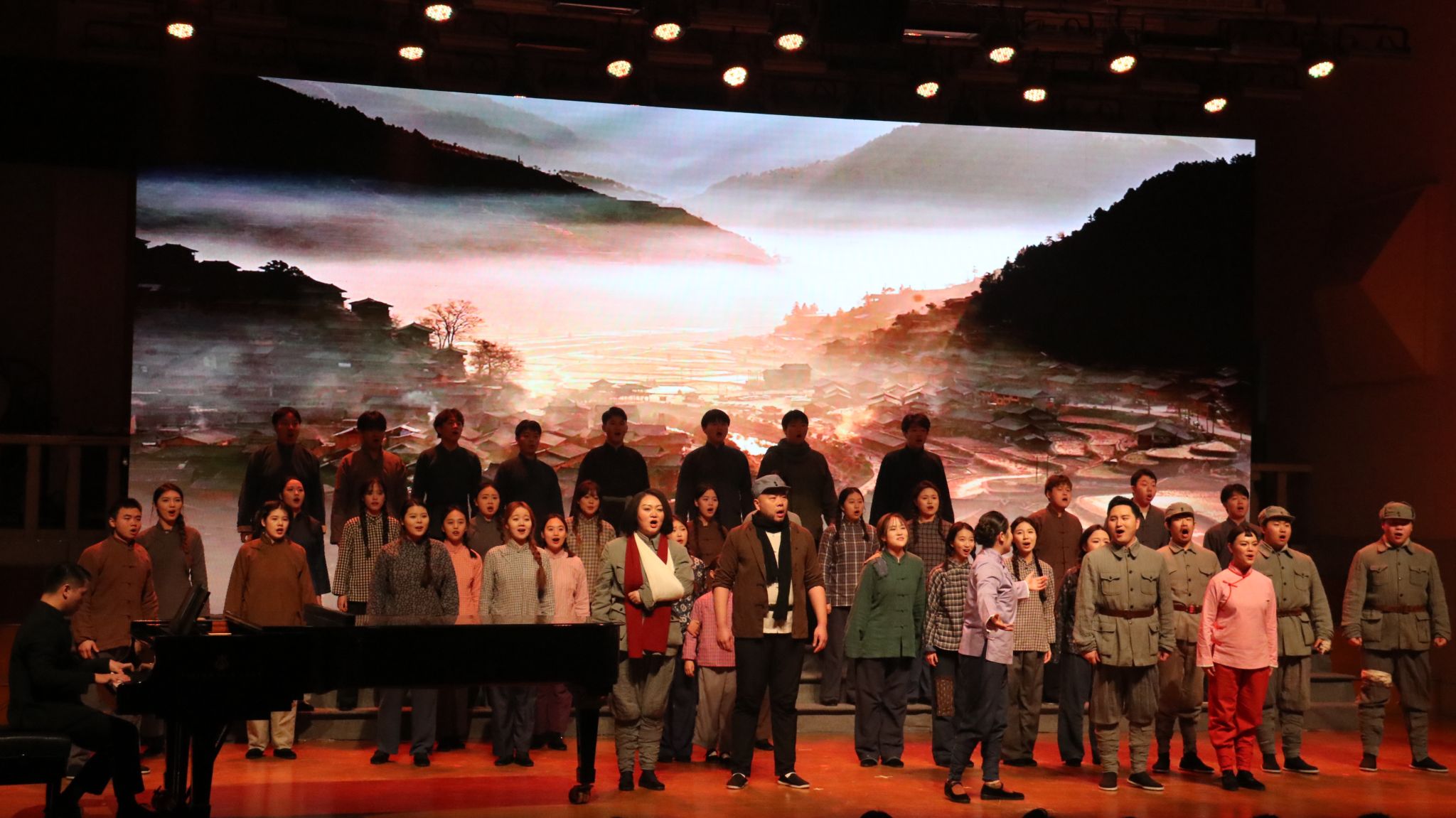 演出在歌剧《白毛女》经典唱段《北风吹》中拉开序幕,唱段展露了旧社会对穷苦人民的残害与压迫以及人民群众对平淡幸福生活的期望。歌剧《党的女儿》《沂蒙山》在对人物、群像开掘塑造中,通过独唱、重唱、合唱多种表演形式交替进行的方式,深刻歌颂了“水乳交融、生死与共”的党群关系,将全场氛围推向高潮。《野火春风斗古城》以《不能尽孝愧对娘》和《娘在那片云彩里》两大唱段,讴歌了革命母子深沉的革命情怀;《洪湖赤卫队》以质朴自然的唱腔和平淡的生活场景,表达了革命者对家乡的热爱和对幸福生活的憧憬。当歌剧《江姐》经典唱段萦绕在整个音乐厅时,现场全体观众在革命先烈浴血战斗的英雄事迹中,领略到他们为共产主义理想奉献终身的大无畏精神。最后,本次演出在由全体演员共同唱响《红梅赞》后落下了帷幕。