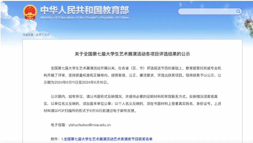 6月12日至18日,全国第七届大学生艺术展演活动在湖北襄阳举办。活动前期教育部召开全国第七届大学生艺术展演活动组委会会议,教育部党组成员、副部长、总督学、组委会副主任王嘉毅,湖北省政府副省长盛阅春出席会议。会议指出,全国大学生艺术展演活动是教育系统举办的规模最大、规格最高、影响最广的艺术实践活动,承载着立德树人、培根铸魂的重要使命。